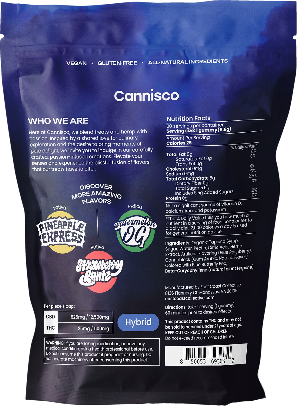 Organic Tapioca Syrup, Sugar, Water, Pectin, Citric Acid, Hemp Extract, Natural Flavor, Natural Coloring, Natural Plant Terpene